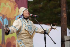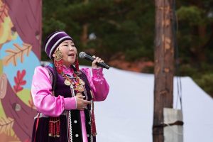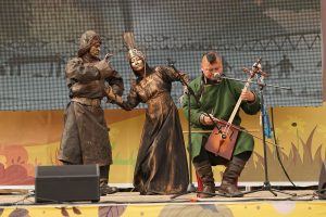 Древнее искусство горлового пения прозвучало в исполнении представителей разных регионов. Улигершин, знаток бурятских древних сказаний, эпосов и обрядовых песен Виктор Жалсанов исполнил приветственную песню в сопровождении театра пластических импровизаций «Гера». Традиционное горловое пение с теленгитским напевом показала творческая пара Алана и Айаны Темеевых из Республики Алтай.