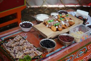 На территории музея расположилась выставка-ярмарка. Мастера продемонстрировали свои работы, учили желающих своему мастерству. Гостей приглашали к себе хозяева бурятской юрты и эвенкийского чума, мастер-классы по традиционной игре шагай-наадан, изготовлению замбаа, аквагриму. В традиционном бурятском костюме желающие фотографировались.