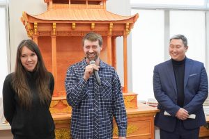 С приветственным словом выступил заместитель директора Республиканского центра народного творчества Тудуп Батуев. Он поздравил мастеров с открытием первой персональной выставки, отметил, что мастерская «Дух дерева» в 2021 г. стала одним из лауреатов Республиканского конкурса «Уран дархан» (народные художественные промыслы Республики Бурятия). Идейный вдохновитель конкурса министр культуры Бурятии Соелма Дагаева отметила в одном из интервью, что задача выставки-конкурса «Уран дархан» в поддержке и мотивации мастеров для создания эксклюзивных изделий, развития сферы народных художественных промыслов республики.
