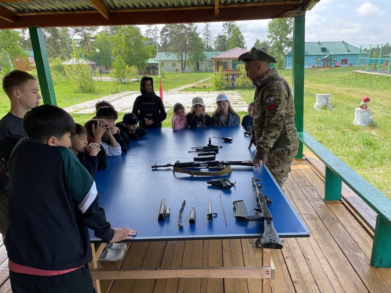 После обеда юных патриотов ждал Урок Мужества от ветеранов СВО, просмотр фильма о героизме воинов на защите интересов Родины и конкурс патриотических песен.