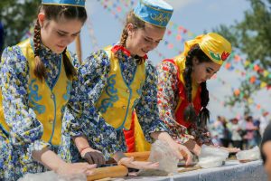 Изюминкой праздника станут конкурсы татарских умелиц Токмач-баттл по нарезке домашней лапши, Баурсак-баттл по изготовлению вкусных орешков из теста и всенародная плясовая «Апипа».